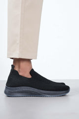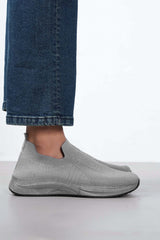 Designed for ease and everyday performance, these grey laceless knit sneakers offer a comfortable, breathable fit perfect for daily wear.
