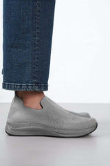 These grey upper breathable shoes with grey sole and black chapati are built for comfort and everyday functionality. Minimalist in stylle, these laceless knit shoes provide a snug fit that pairs well with a range of outfits for all occasions.
