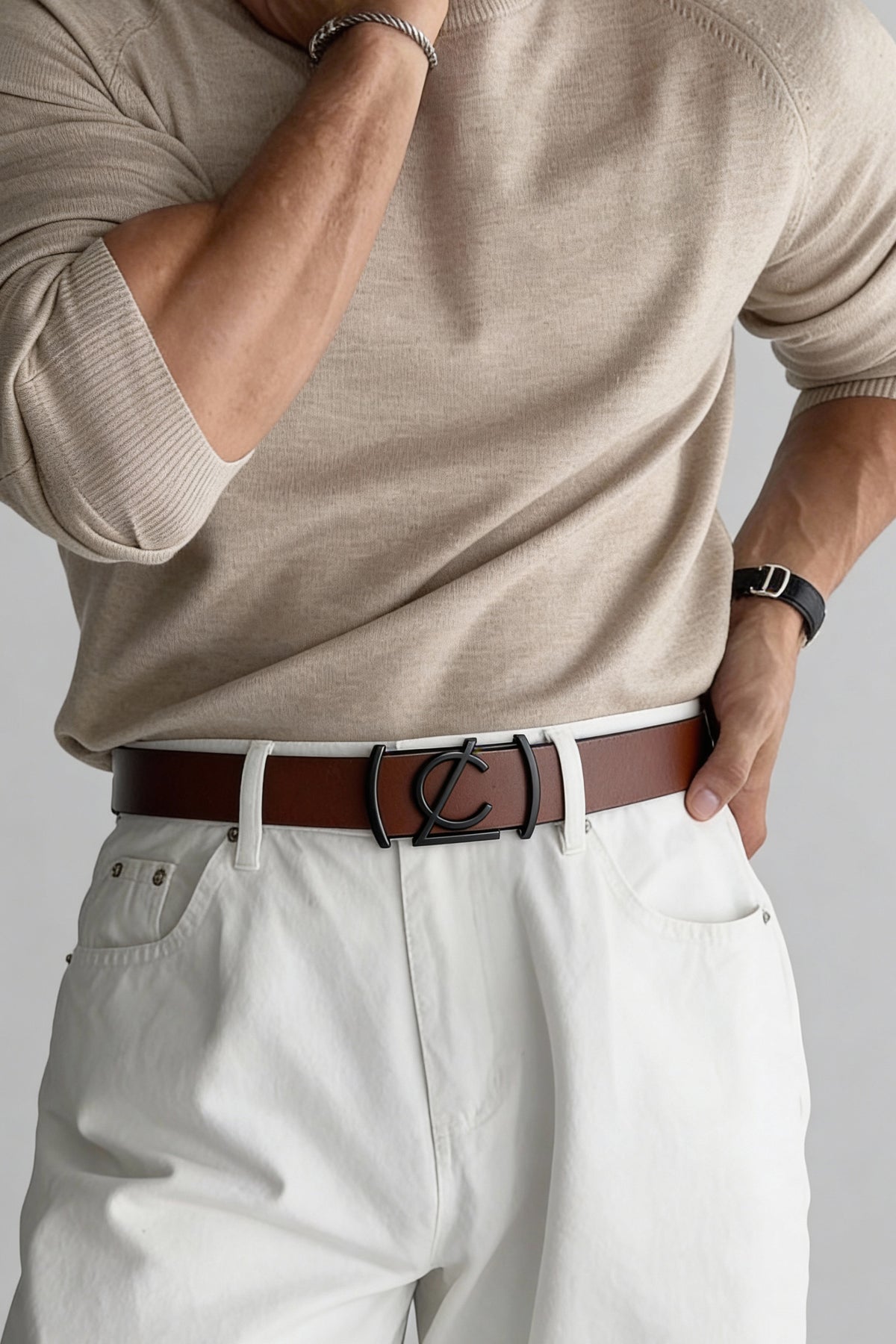 Plain Brown Leather Belt with premium LOGO Collection buckle
