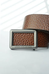 Timeless and versatile, this brown cow milled leather belt is the ultimate wardrobe staple for every gentleman.