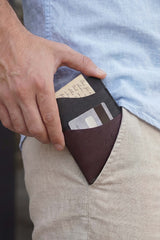 Subtle yet classy, this black and maroon card wallet is a must have to keep your important cards organized. The smart design can easily slide into your pocket or your wallet, however you want to carry it.