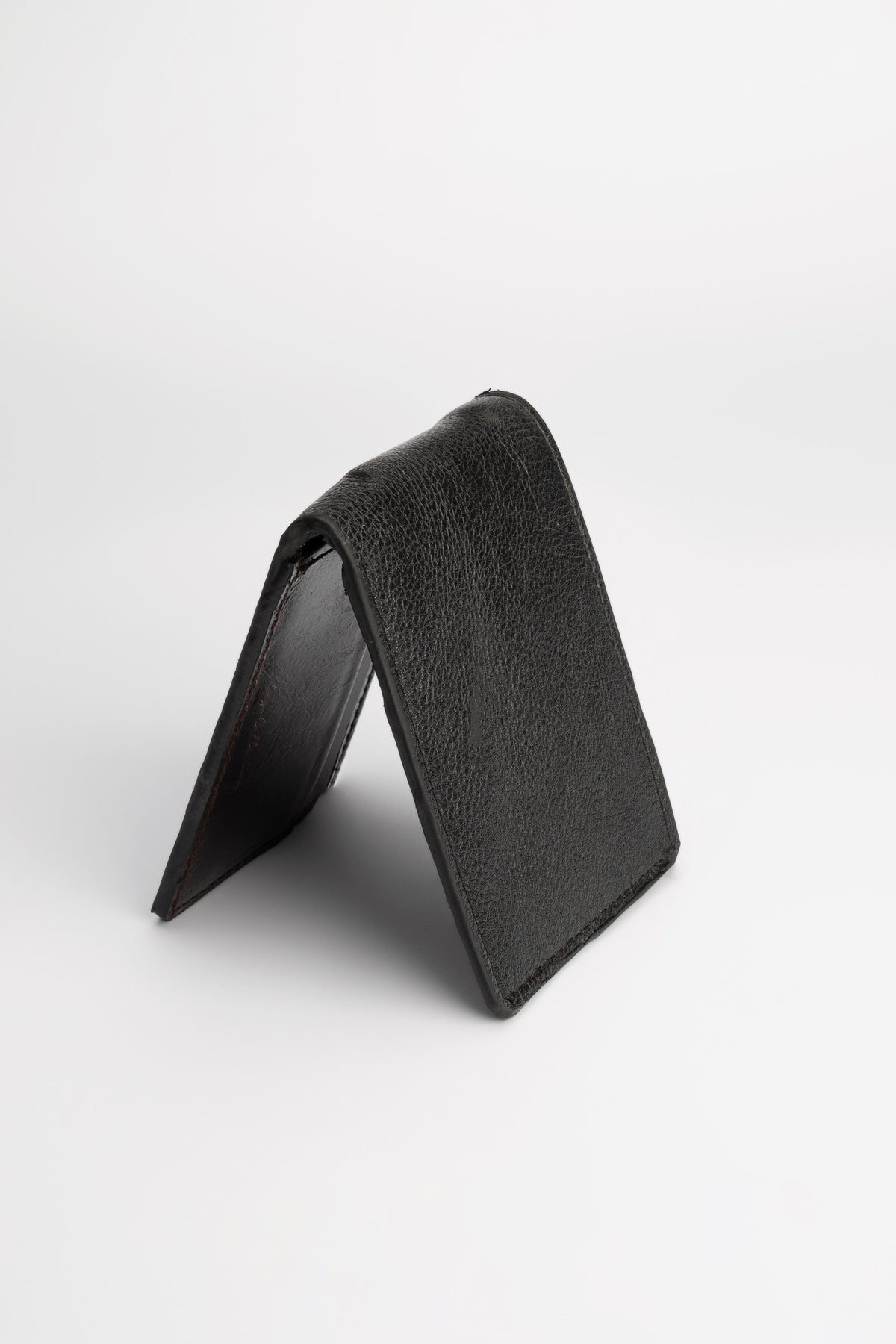 This note wallet has a minimal design which is reliable. Black in color, this wallet is made from cow milled leather, offering a smooth texture and everyday durability.