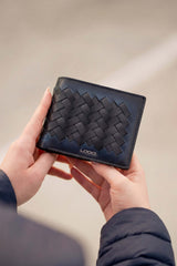 Made from premium leather, this gradient maroon and black wallet features an interwoven design that blends bold style with everyday functionality. A perfect choice for men who love a standout accessory.