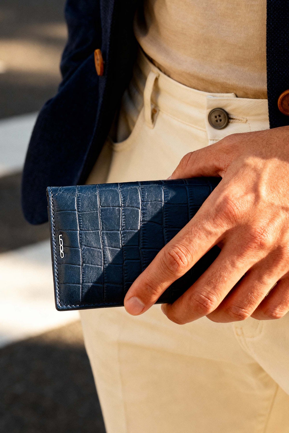 This wallet is designed for men who appreciate bold texture and refined craftsmanship. This long wallet is made from premium crocodile-textured cow leather. Its sleek proportions (7.5” × 7”) have a polished appeal and structured finish, making it a statement accessory that balances everyday practicality with timeless style.