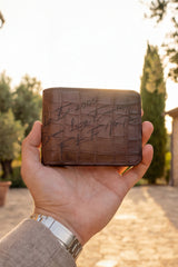 Stylish in design, this brown pin wallet is made from crocodile textured cow leather. It features a laser engraving and a hand-painted effect for an artisanal finish.