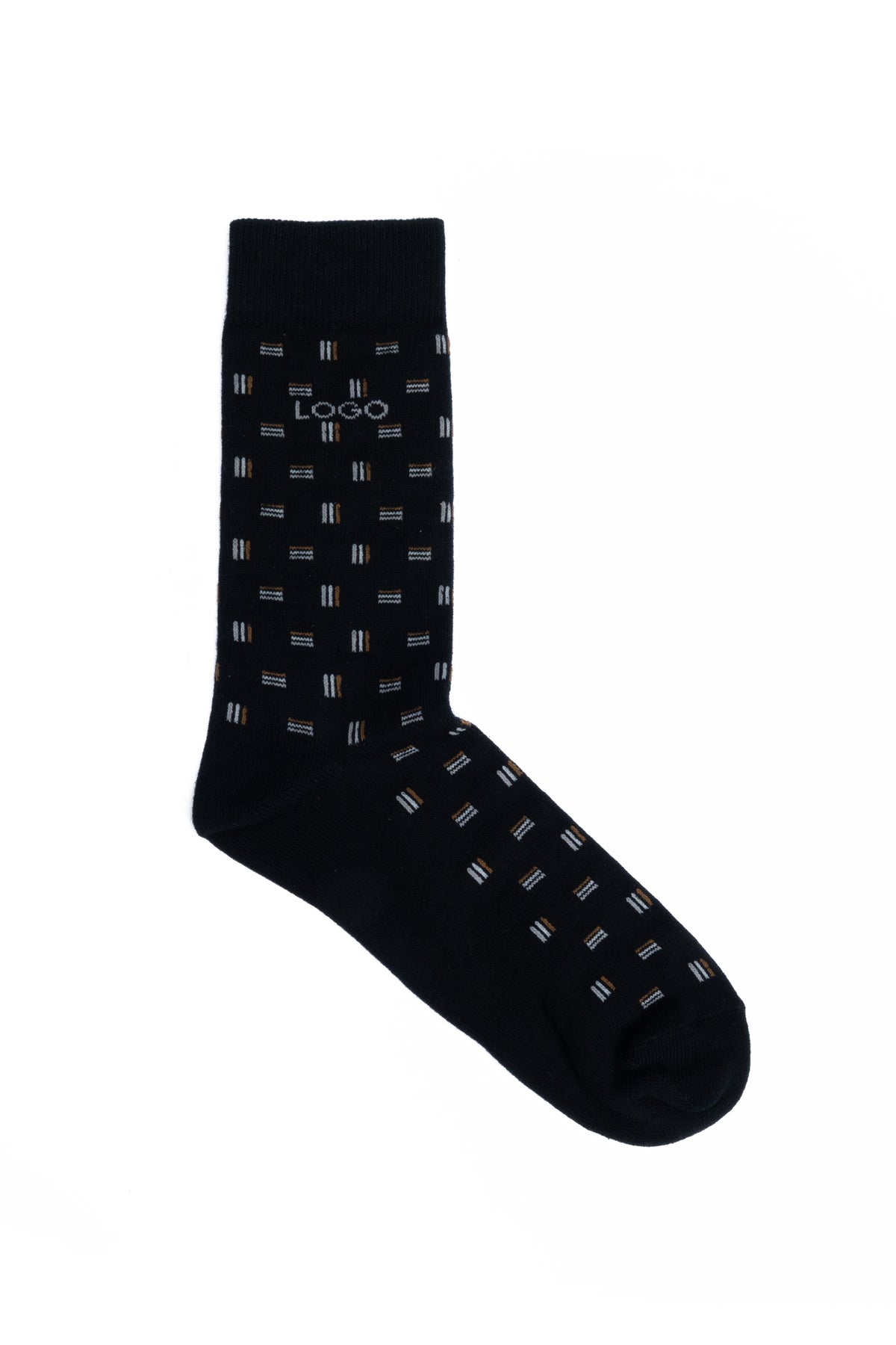 Pack of one classic black crew socks featuring subtle multi-tone dash detailing and logo accent, offering a refined everyday look. They are made with breathable stretch fabric for lasting comfort and support.