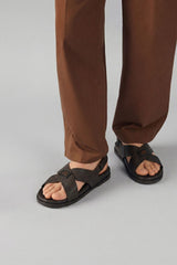Brown in color, these cross strap sandals feature a premium full grain leather upper designed for both style and durability. The leather lining and sturdy sole ensure comfort and support for all-day wear.