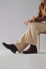 These green men’s footwear styles feature a premium cow suede upper leather in a soft beige tone, offering a Stylish look. They are designed for comfort and durability to deliver effortless smart-casual styling.