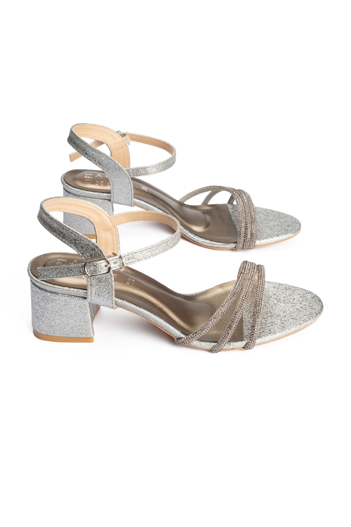 These fancy grey heel sandals feature a graceful mix of vegan leather and mesh rope, offering an elegant yet lightweight design which is deal for occasions that call for style with comfort.