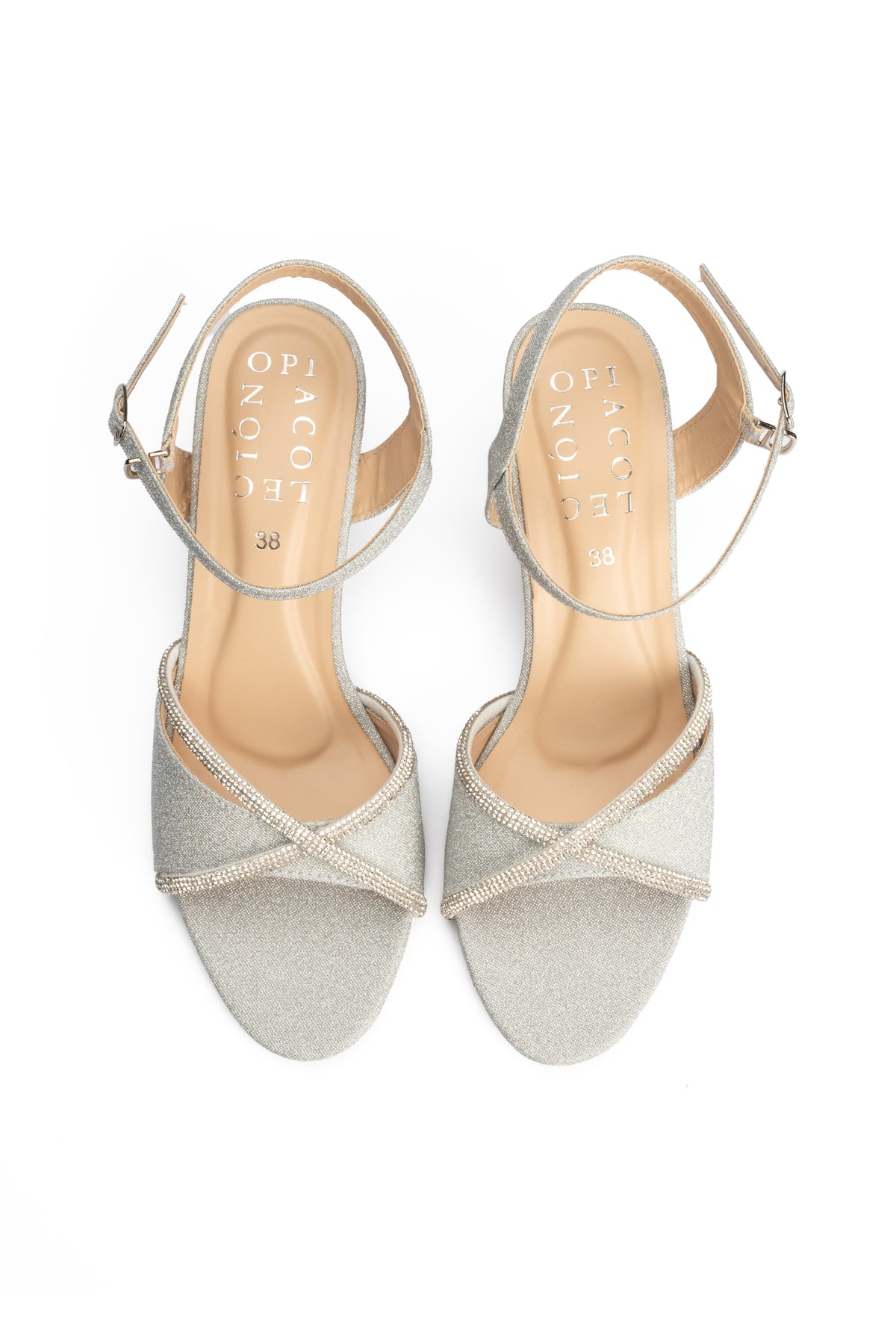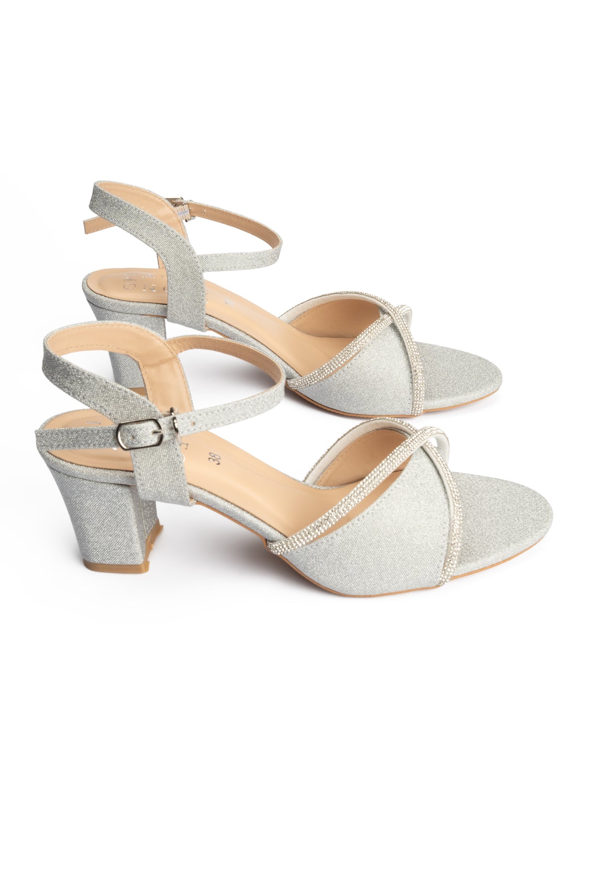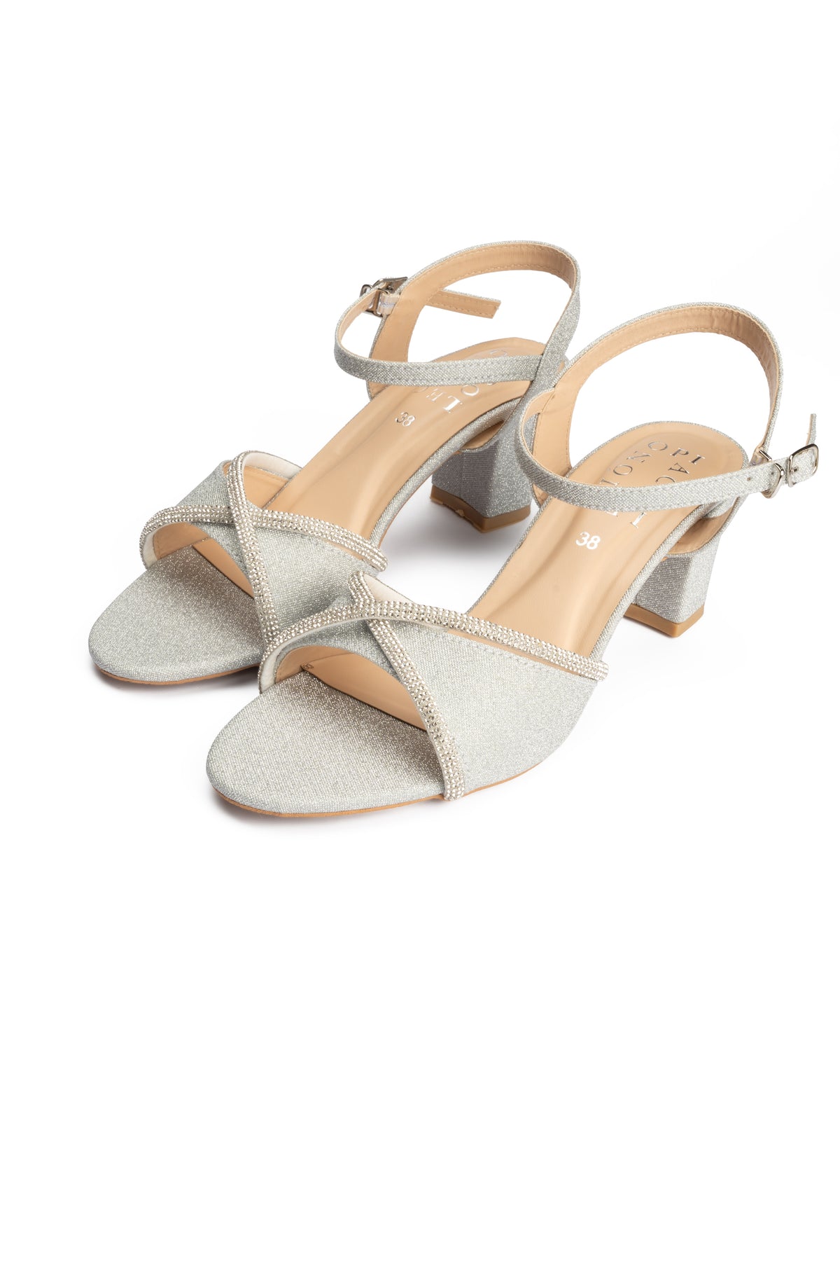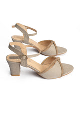 These stylish silver heel sandals blend smooth vegan leather with fancy mesh rope detailing for a refined yet modern look. It is designed to offer comfort and elegance making them ideal for festive and evening wear.