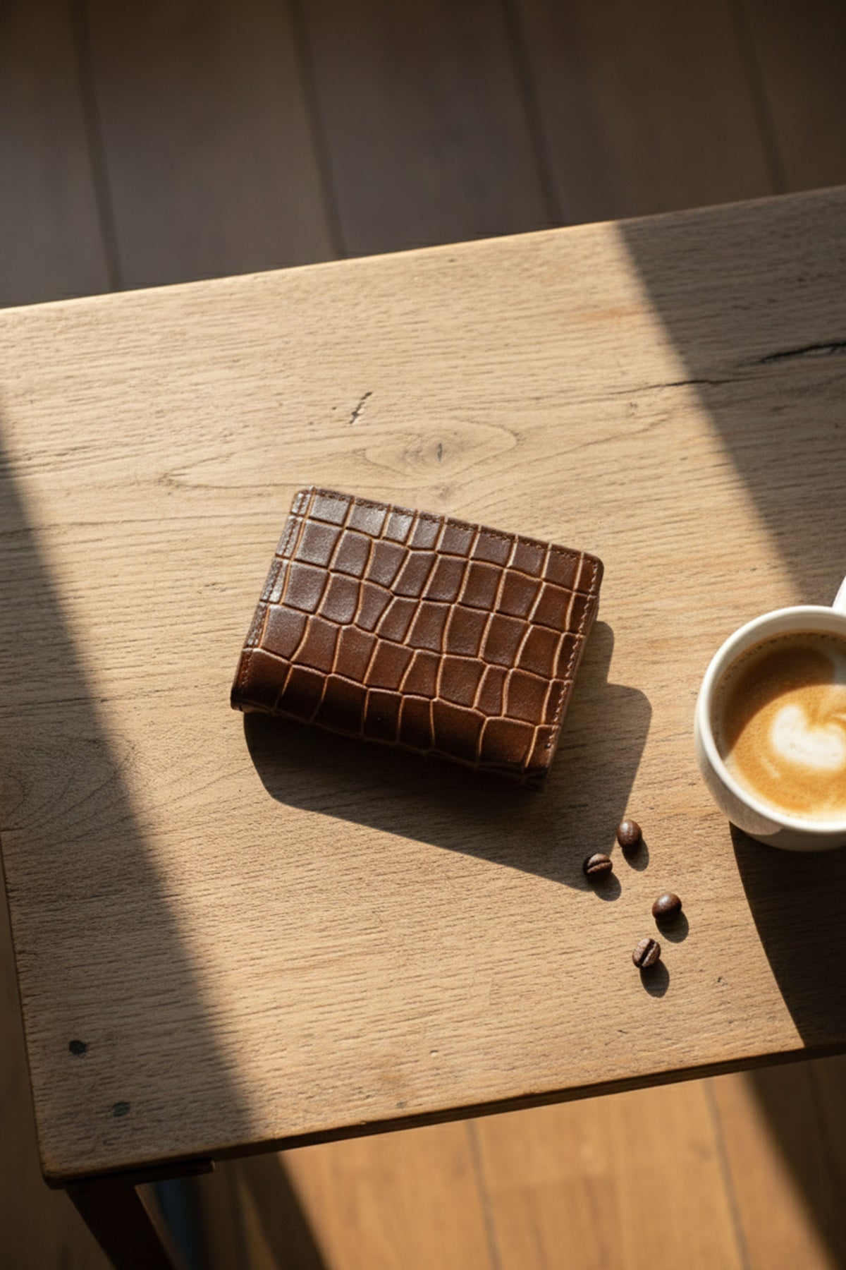 Classic and durable, this brown wallet is made from crocodile-textured cow leather for a structured, premium feel.