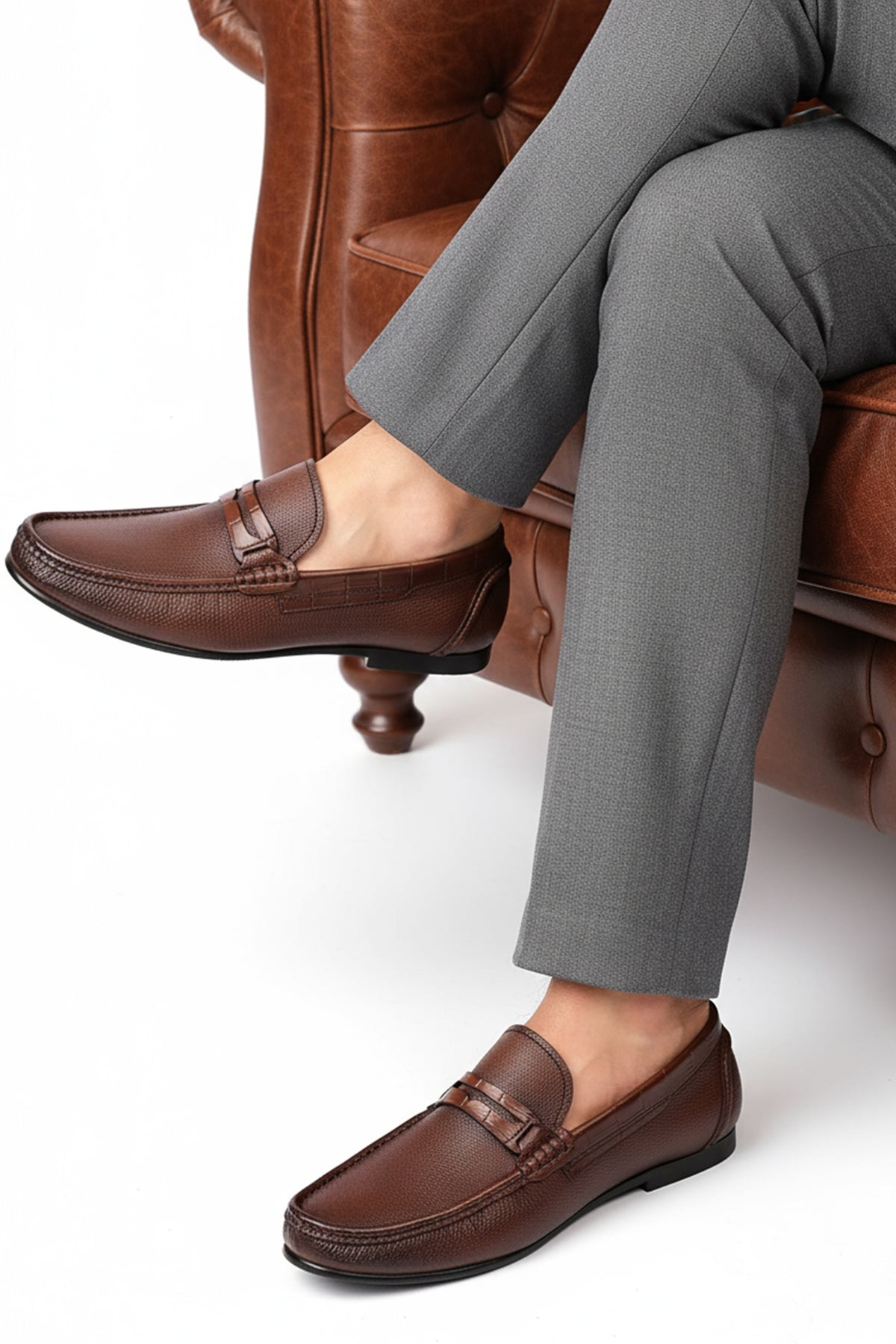 These chocolate brown apron-toe shoes combine comfort and class, making them an essential addition to any gentleman's wardrobe. It is a blend of modern design and timeless elegance.