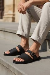 The minimalistic design of these grey slippers reflects the personality of the modern man. Made from premium material, these leather slippers are an ideal lounge wear and can be used for casual outings.