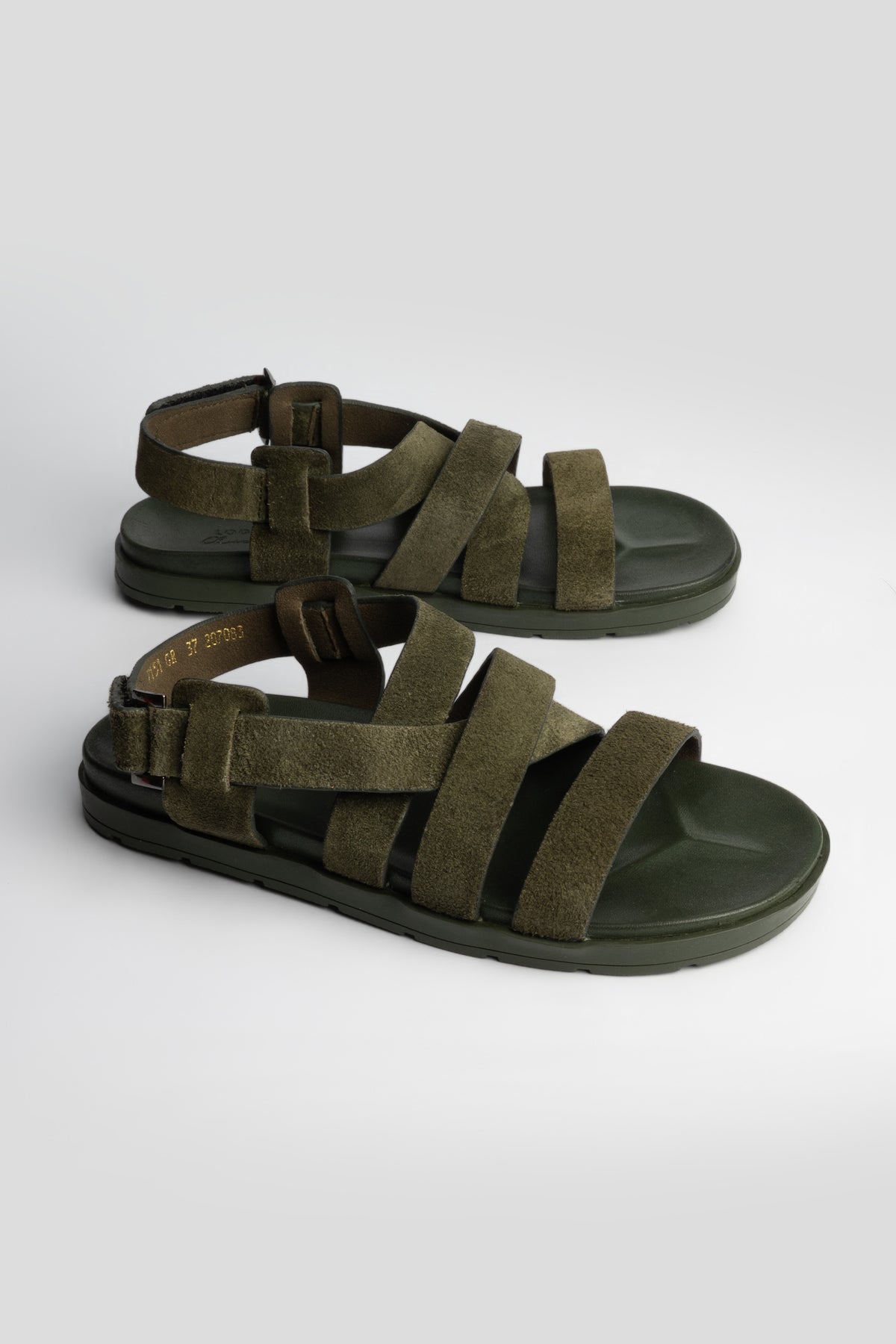 Strappy in design, these green sandals have a premium cow leather upper that offers both durability and a classic open design. The leather lining and rubber sole provide comfort and stability for all-day wear.