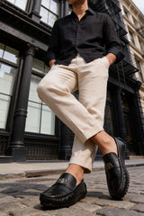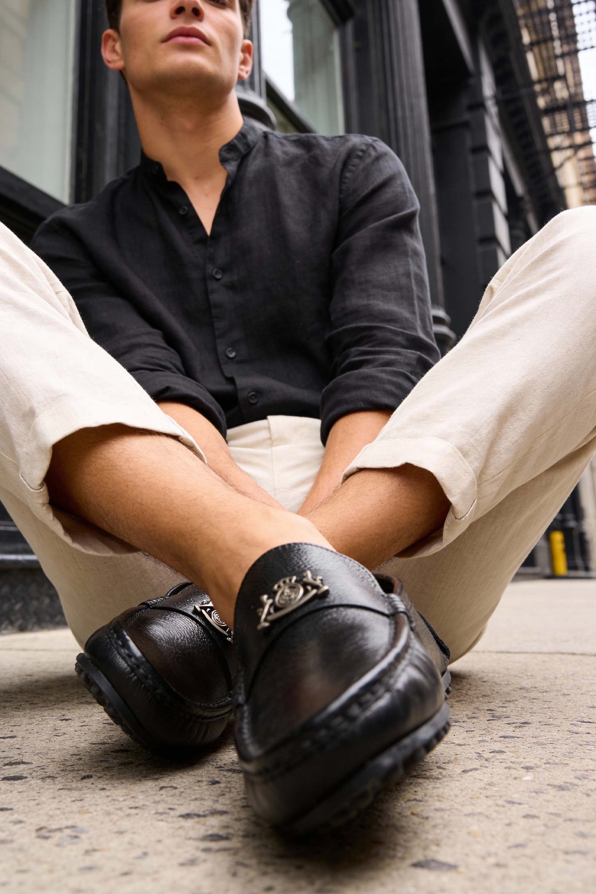 Distinctive in design, this black formal shoe is made from genuine cow leather. This article is designed for a lasting comfort and gives a royal vibe with a luxurious brooch detail on top.