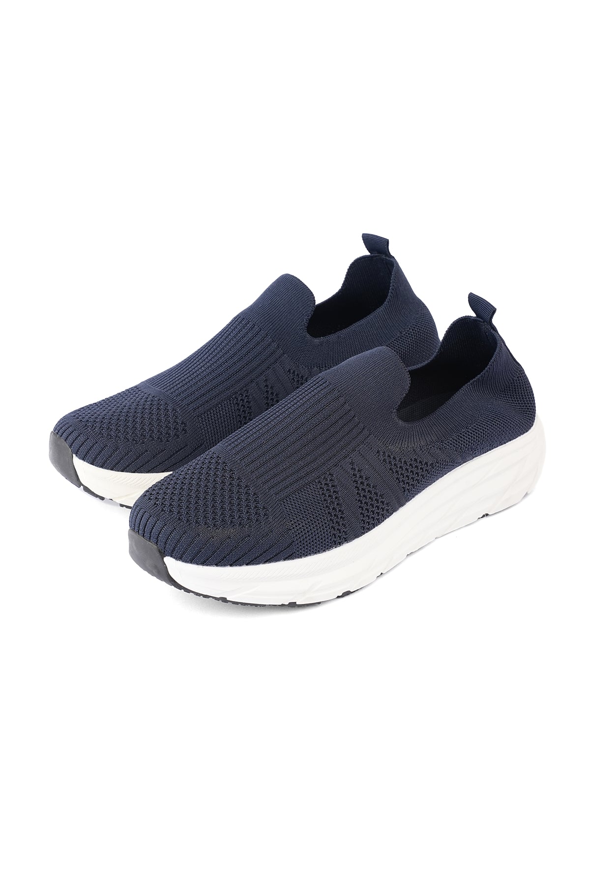 These blue laceless knit sports shoes offer a snug, breathable fit that moves with you. The MAX CUSHIONING outsole and ARCH FIT technology provide superior support, balance, and all-day comfort.