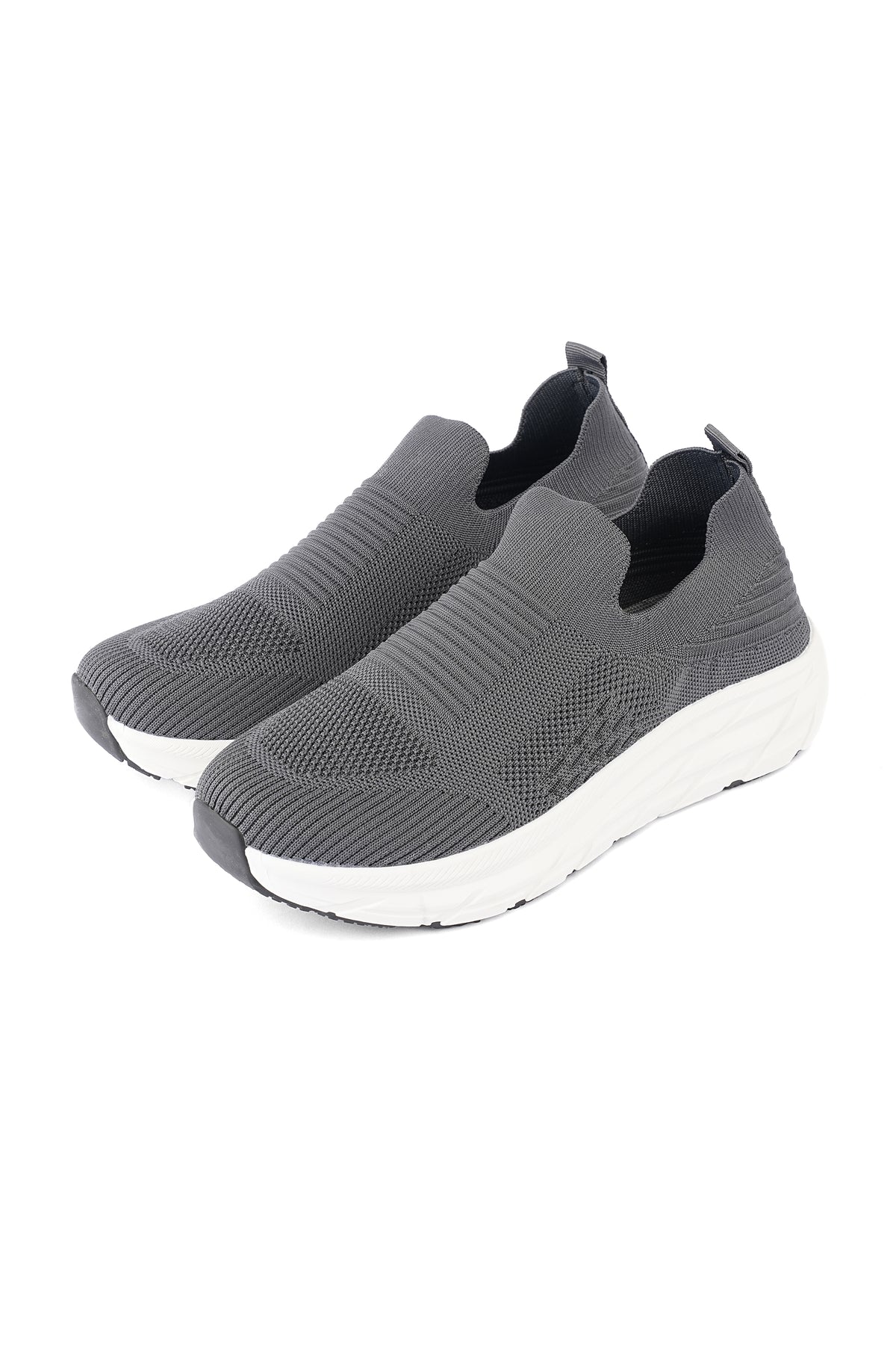 Built for comfort and performance, these grey laceless knit sports shoes have a smart fit and breathable design. The MAX CUSHIONING outsole combined with ARCH FIT technology provides superior support and stability for everyday wear or active routines.