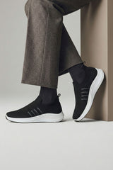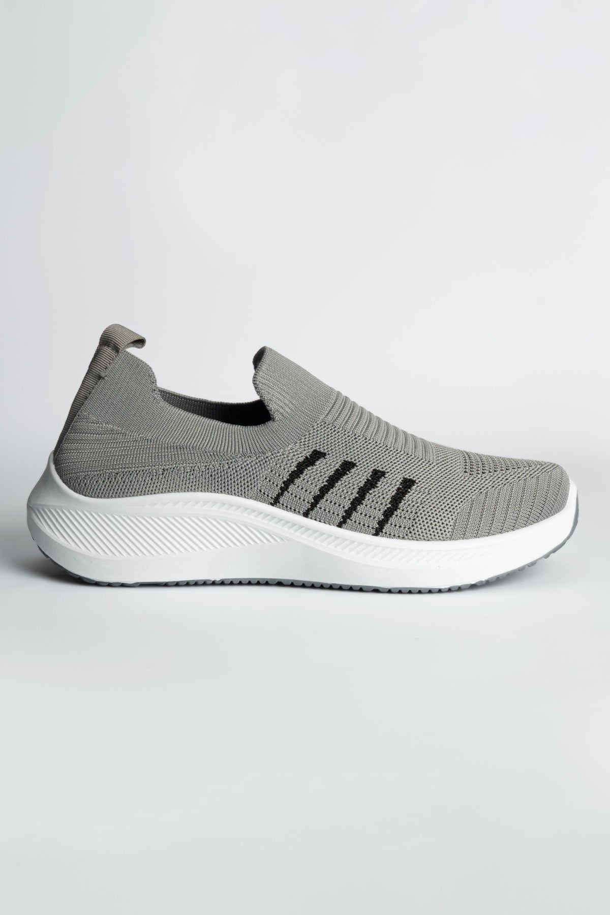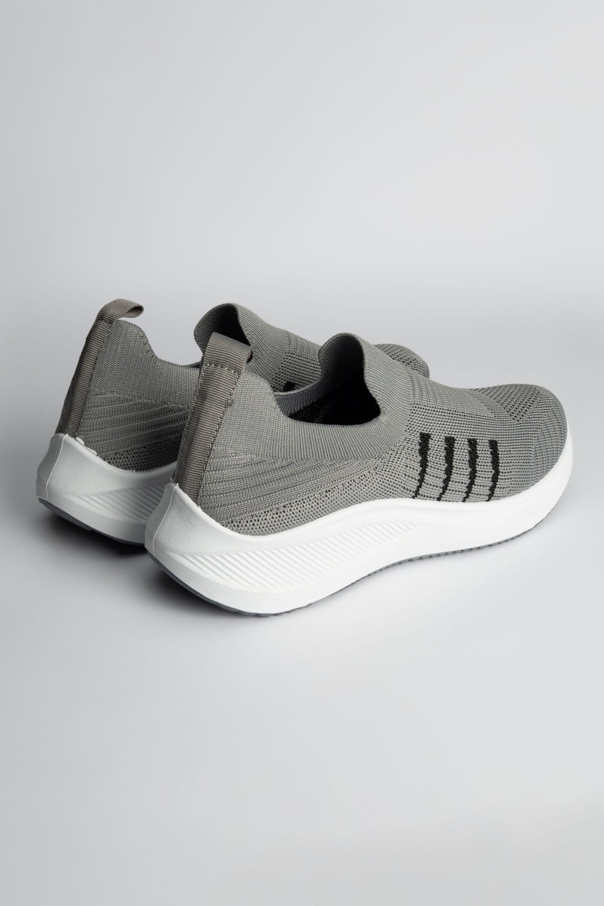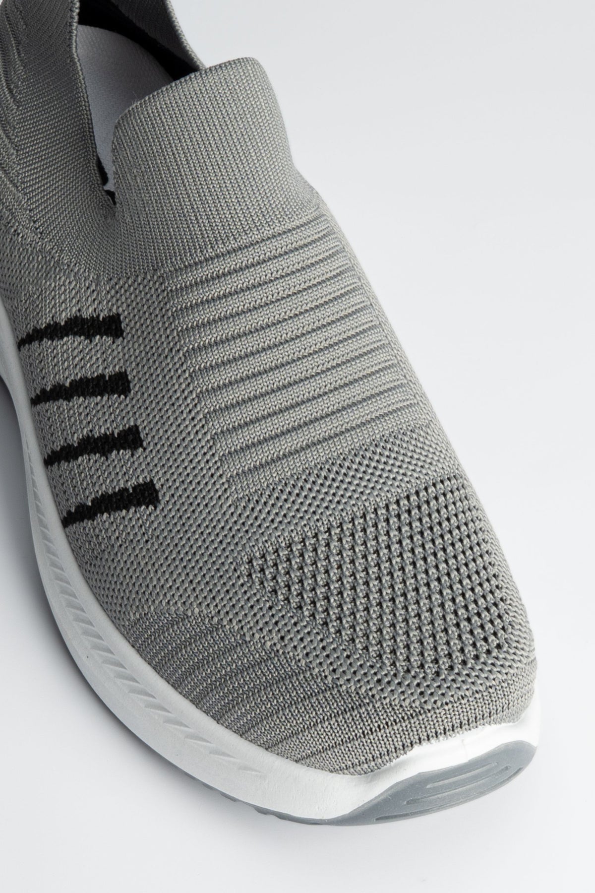 Super easy-to-wear, these grey shoes with flexible fit are designed for all-day comfort. This laceless knit design pairs breathable construction with advanced cushioning and foot-support technology.
