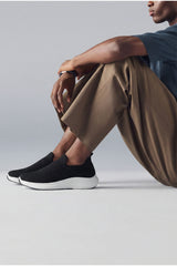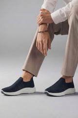 This blue modern slip-on style combines lightweight comfort with supportive technology. The breathable knit upper ensures ease of movement, while the cushioned sole and medicated insole provide lasting foot support.