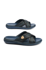 These casual blue slippers combine premium cow leather uppers with cow leather lining and a durable rubber sole. They offer everyday comfort with a classic finish.