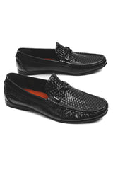 Step out in style with these matte black formal shoes featuring a delicate interwoven criss-cross pattern on top. This is designed to match the vibe of the modern man.