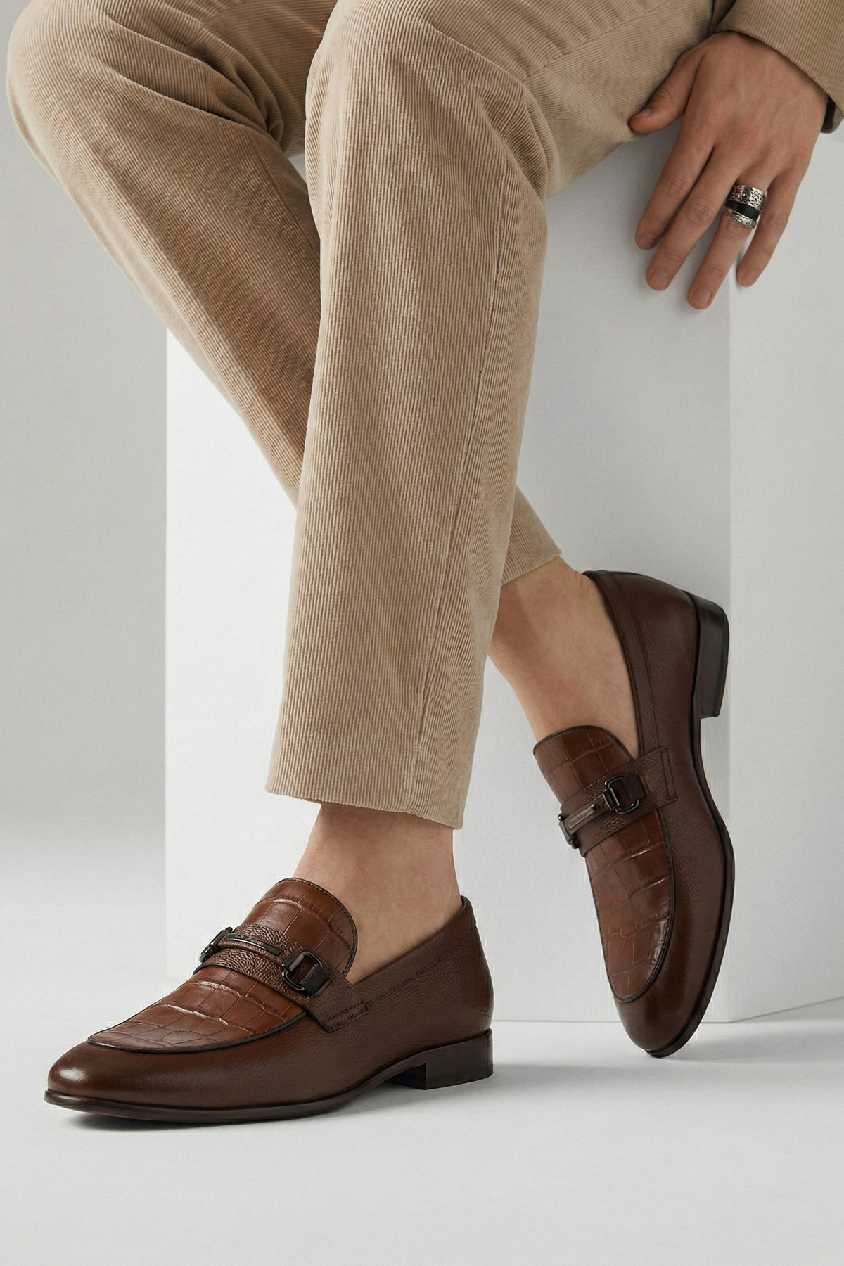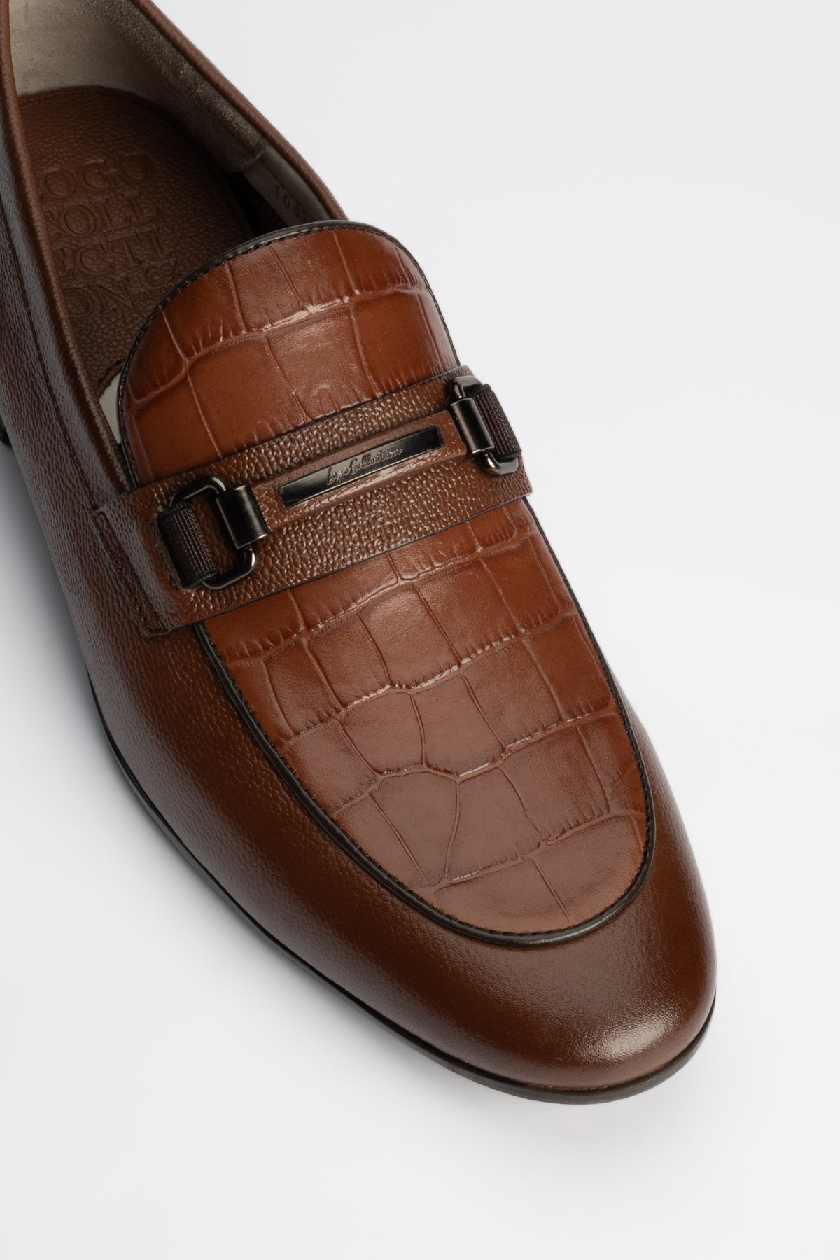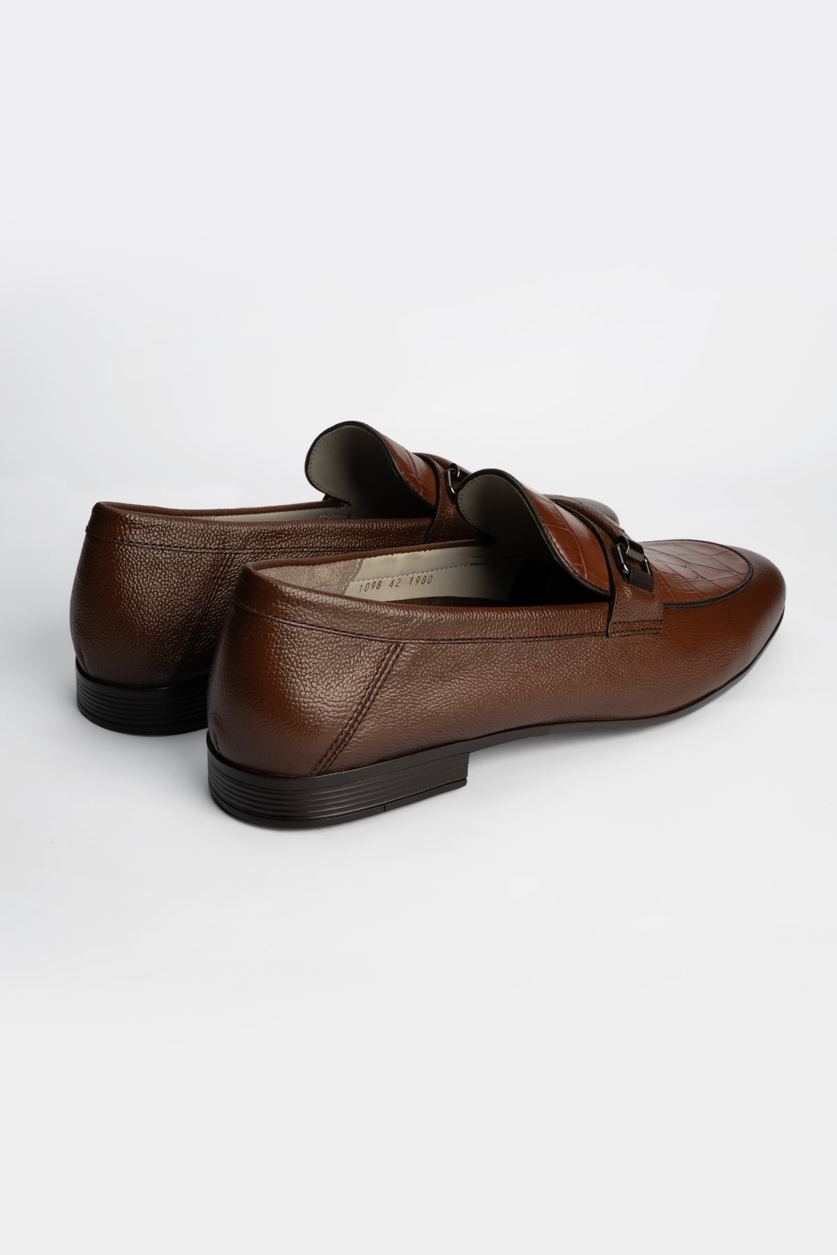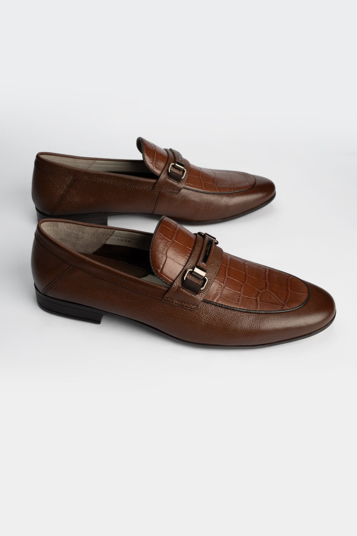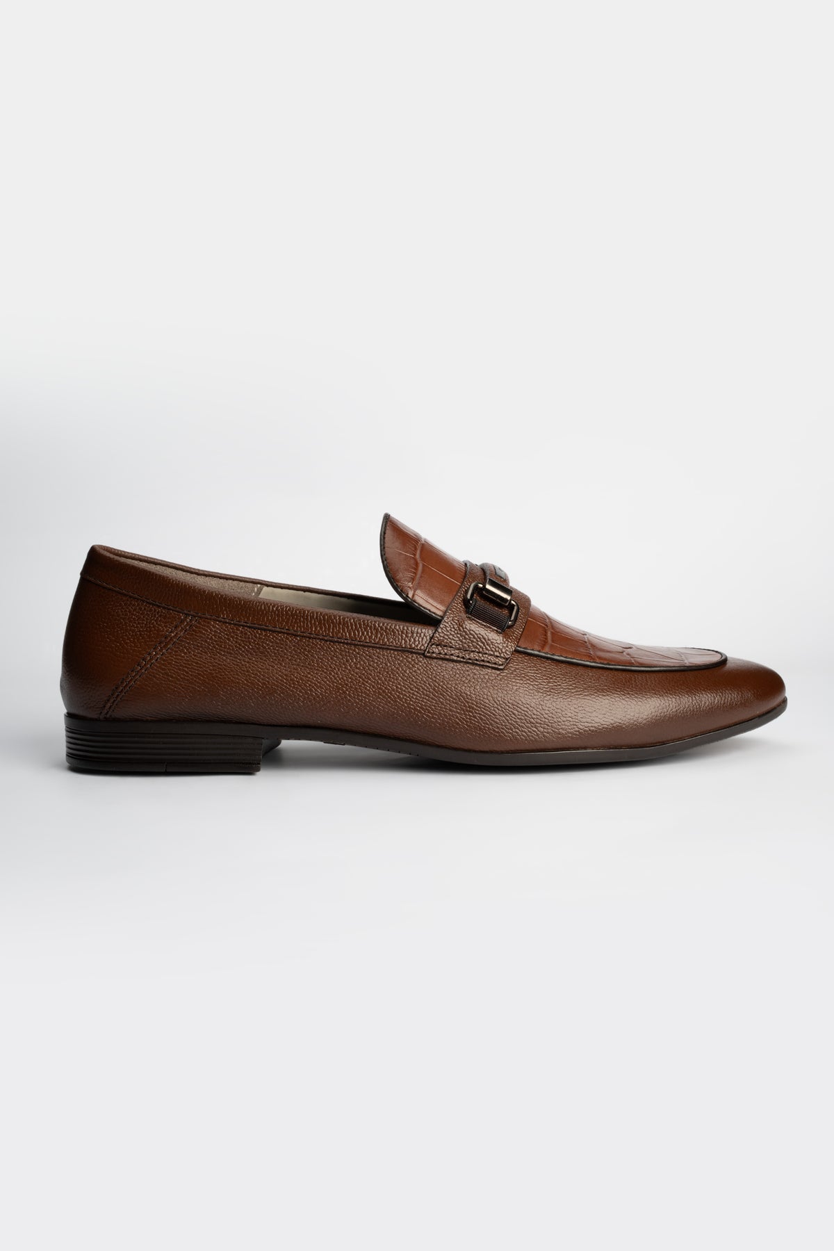 - Brown cow milled leather upper with crocodile texture for a luxe finish.