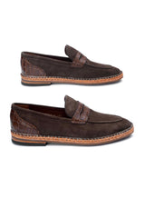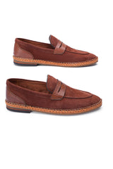 Add a pop of colour to your wardrobe with these Rich chocolate brown penny loafers. They are designed for men who appreciate subtle elegance. These suede shoes bring a stylish twist to casual or semi-formal outfits.