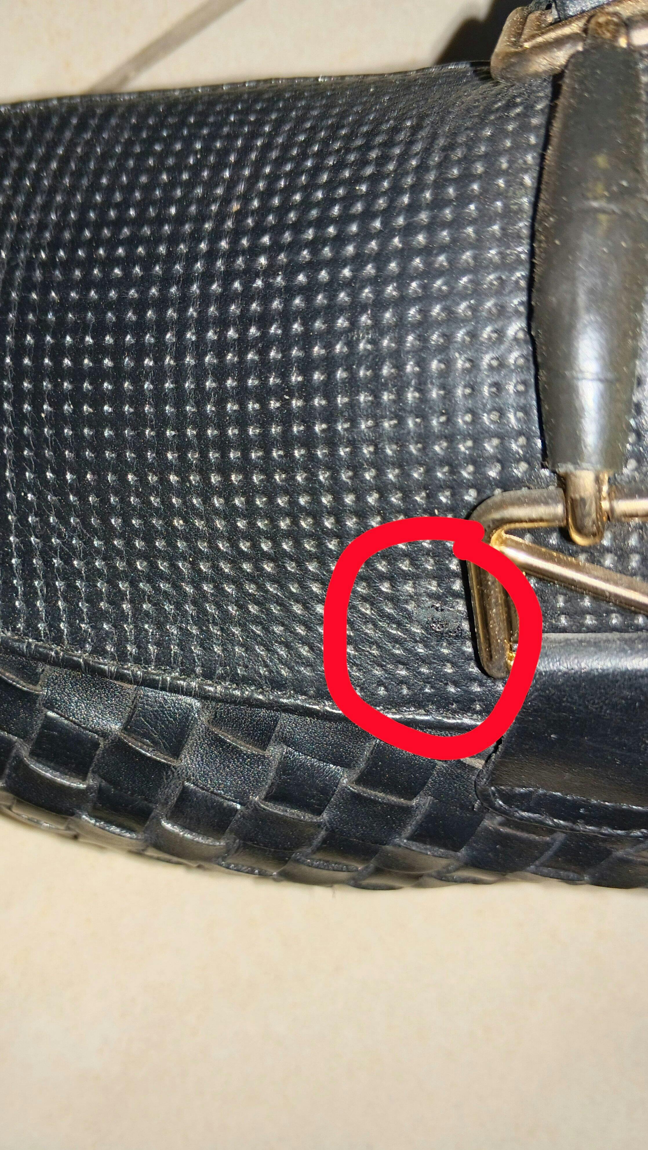 - Black embossed leather upper with hand-finished weaving on the vamp.
