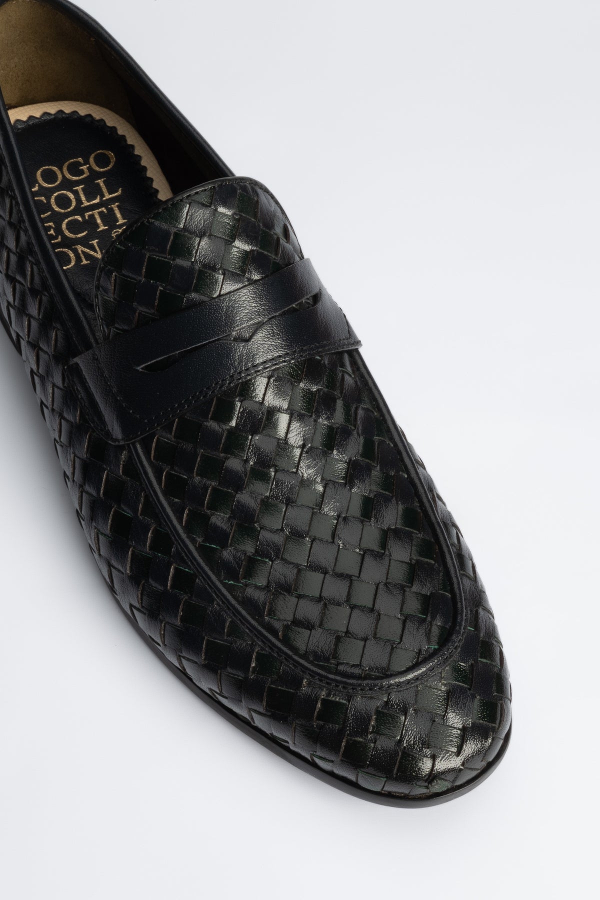 Leather upper with intricate weaving design