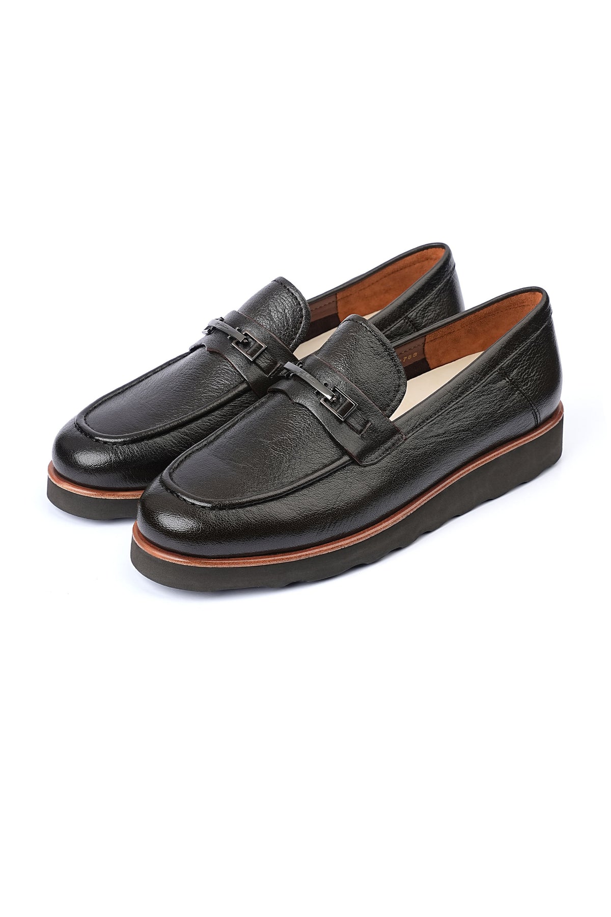 These chocolate brown shoes have a caramel brown finish with a milled-feel leather upper. It is designed to combine class with everyday ease.