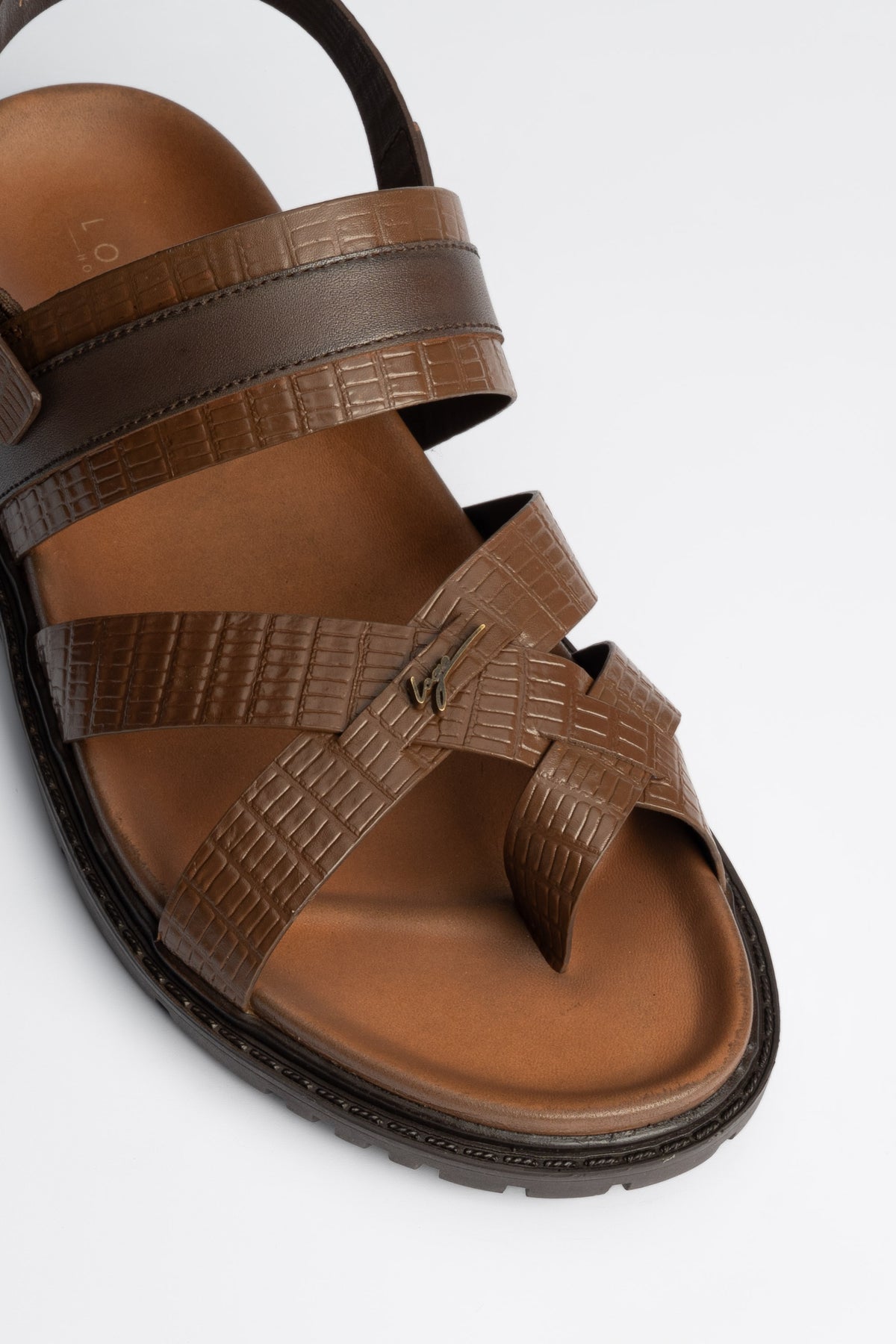 A modern sandal in deep brown, handcrafted with premium cow leather. It is perfect for elevating your day-to-day or dressing up smart casual outfits.