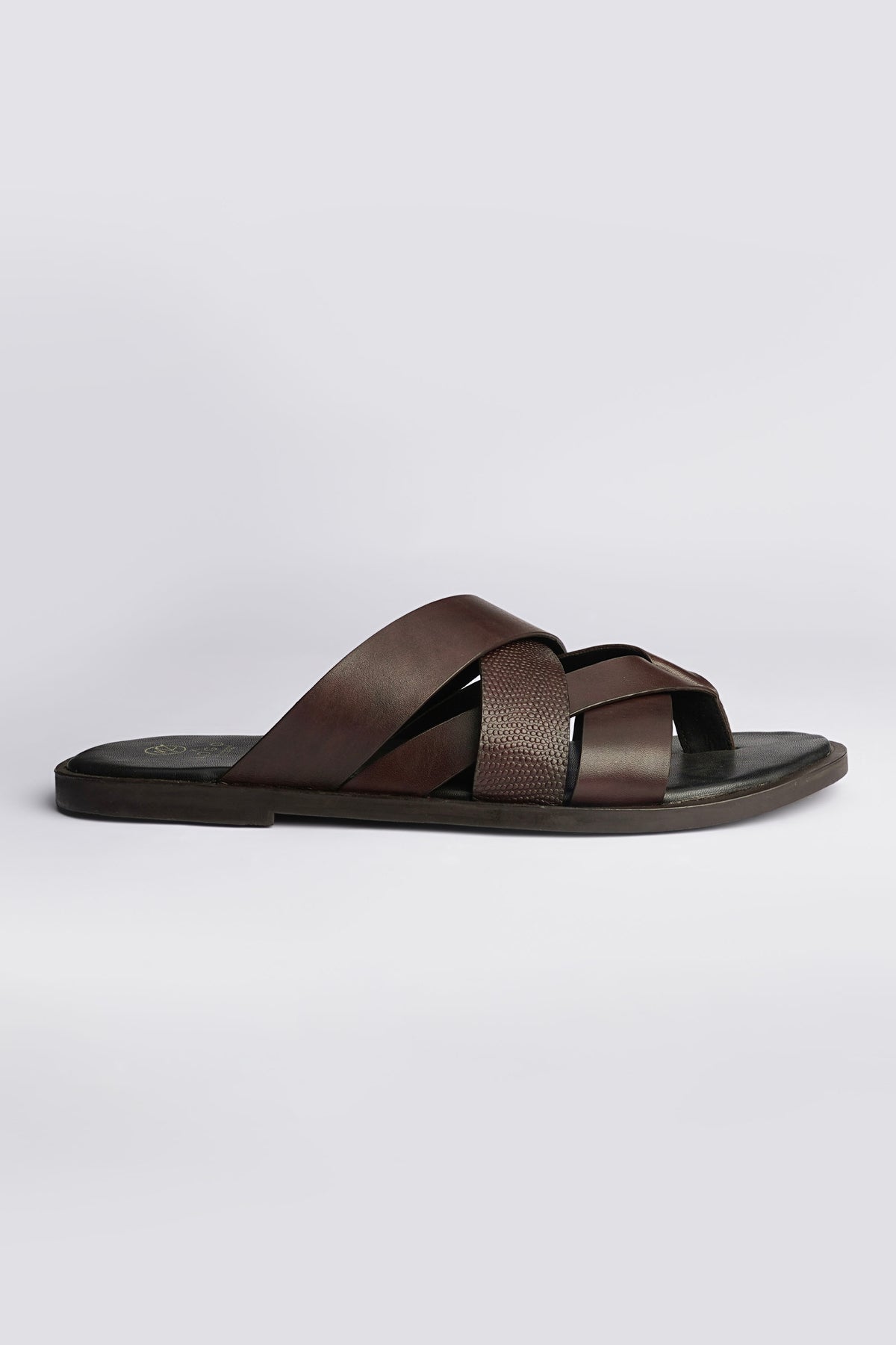 Designed for everyday ease with a classic appeal, this brown strappy slip-on offers a comfortable and relaxed fit for men. Its clean, versatile design makes it ideal for casual wear while ensuring durability and long-lasting comfort.