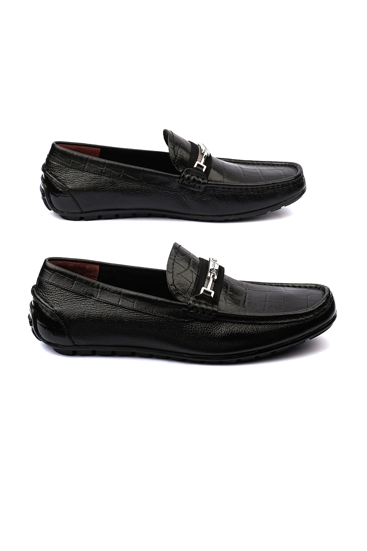 Style your formal look with these smart black leather shoes. These smart shoes are finished with a striking silver brooch for refined elegance. They are perfect for upscale events or polished vibe for daily wear.