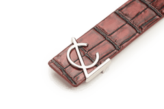 Red croc patterned leather belt with premium LOGO Collection buckle