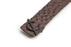 Brown rugged textured leather belt with premium LOGO Collection buckle.