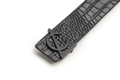 Black croc patterned leather belt with premium LOGO Collection buckle.