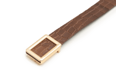 Brown croc Style leather belt with premium LOGO Collection gold buckle.