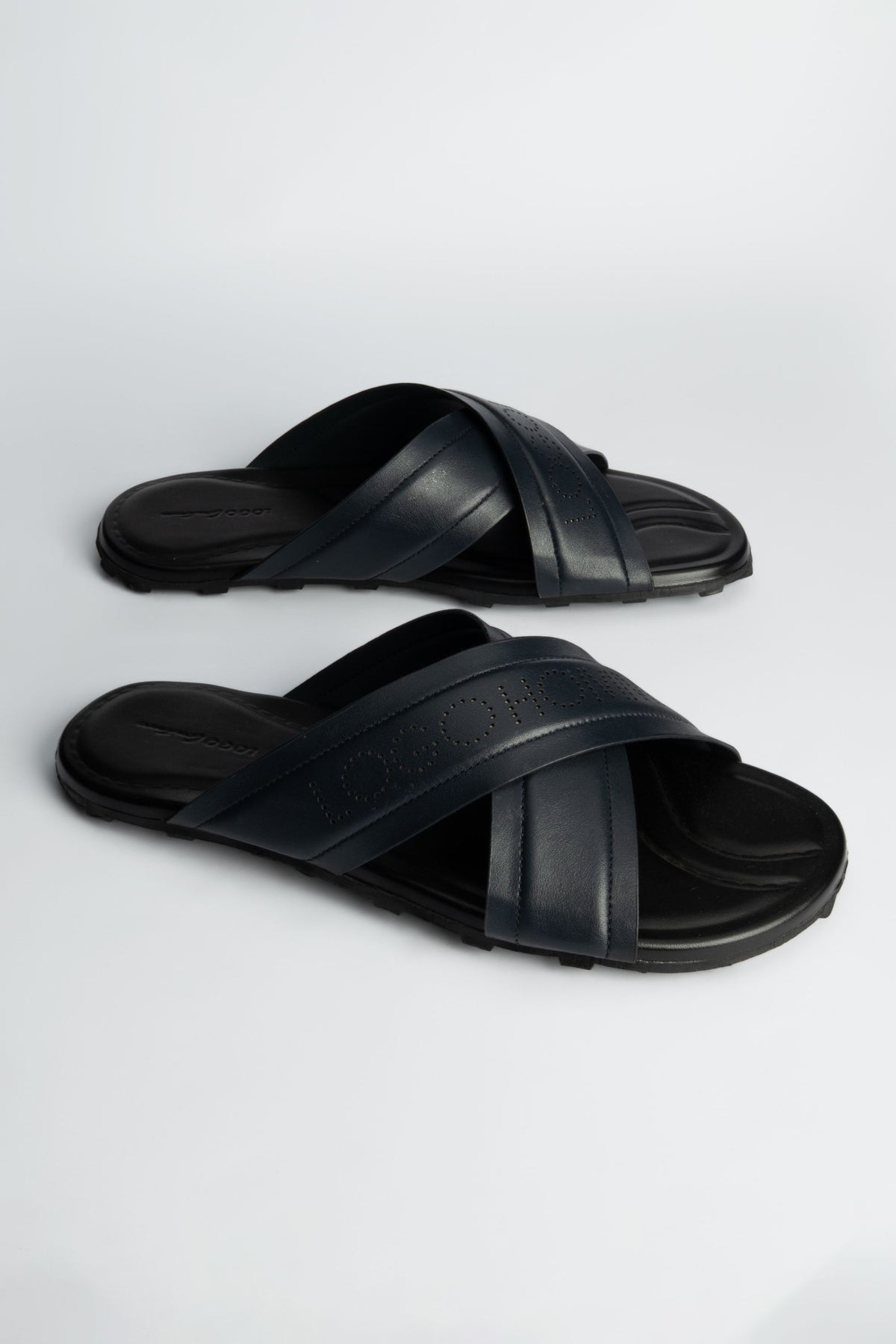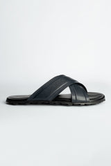 Simple yet durable, these black leather slippers are made with smooth cow leather and a sturdy rubber sole. They are built for easy wear and they deliver comfort with reliable grip.
