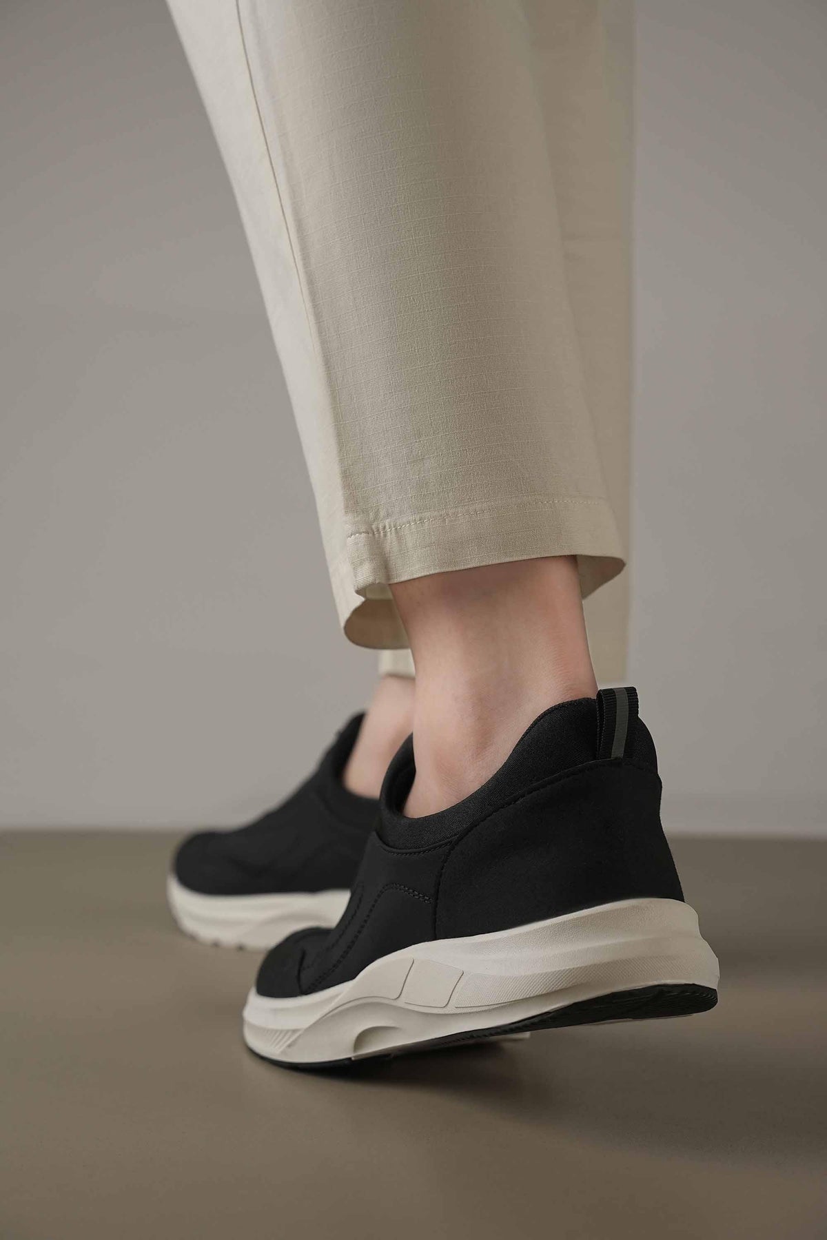 This stylish black laceless knit sneaker provide your feet with a comfortable fit. This footwear comes with mac cushioning and arch fit, it’s built for high-performance comfort.
