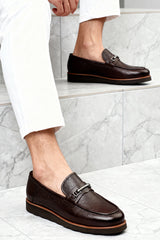 These chocolate brown shoes have a caramel brown finish with a milled-feel leather upper. It is designed to combine class with everyday ease.