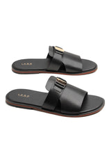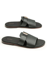 Green single strapped slipper with silver buckle design