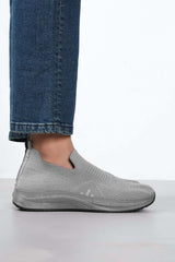 For men who value simplicity and comfort, these grey upper knit shoes with grey sole and black chapati combines breathable materials and timeless design for all-day wearability.