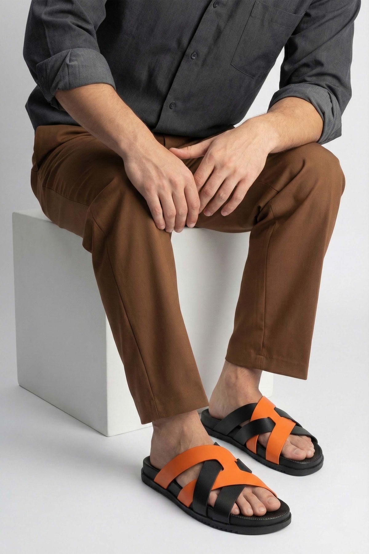 Designed for a smart yet practical finish, this orange slipper showcases a smooth cow leather upper paired with a durable rubber sole. It is ideal for everyday ease as it delivers comfort without compromising on style.